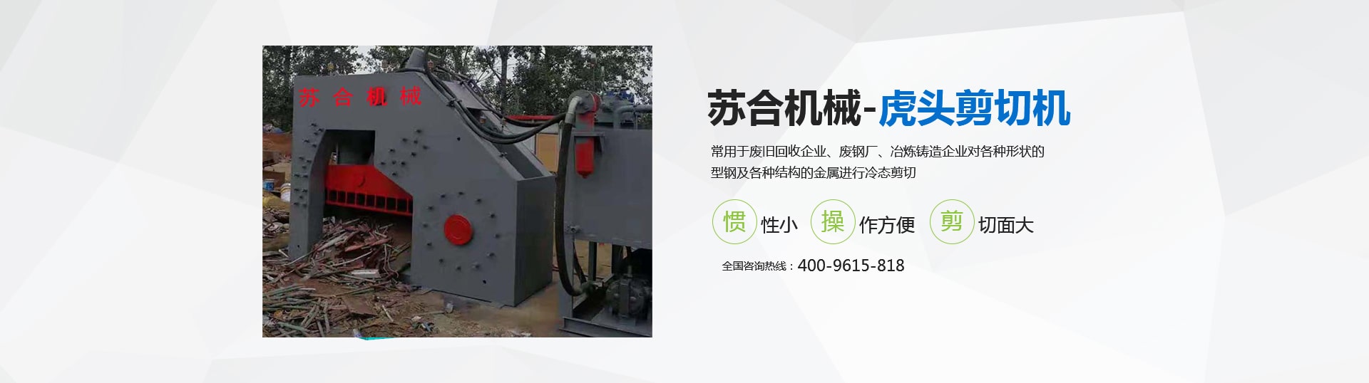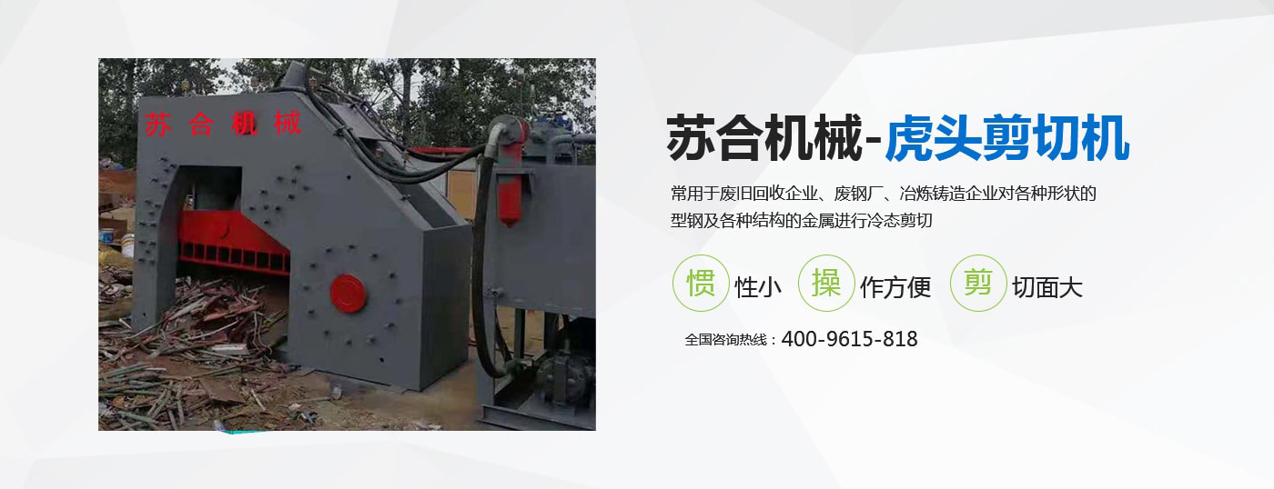 虎頭剪具有體積小、重量輕、慣性小、噪音低、動作平穩(wěn)、操作方便、靈活、剪切斷面大、剪刀口調(diào)整方便等優(yōu)點,操作使用安全。常用于廢舊回收企業(yè)、廢鋼廠、冶煉鑄造企業(yè)對各種形狀的型鋼及各種結(jié)構(gòu)的金屬進(jìn)行冷態(tài)剪切。剪切機(jī)的用途就是用來剪切定尺、切頭、切尾、切邊、切試樣及切除軋件的局部缺陷等。 滑縣蘇合機(jī)械制造有限公司性能穩(wěn)定,操作簡單。歡迎來電咨詢 <了解更多>